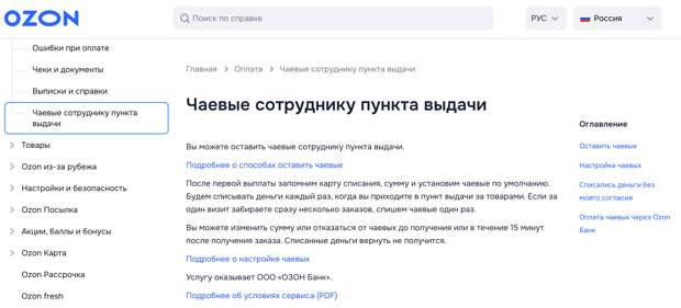 Ozon обновил правила работы чаевых в пунктах выдачи: если покупатель оставит чаевые хотя бы один раз, сервис автоматически запомнит карту, сумму и будет списывать её при каждом следующем визите за заказами.