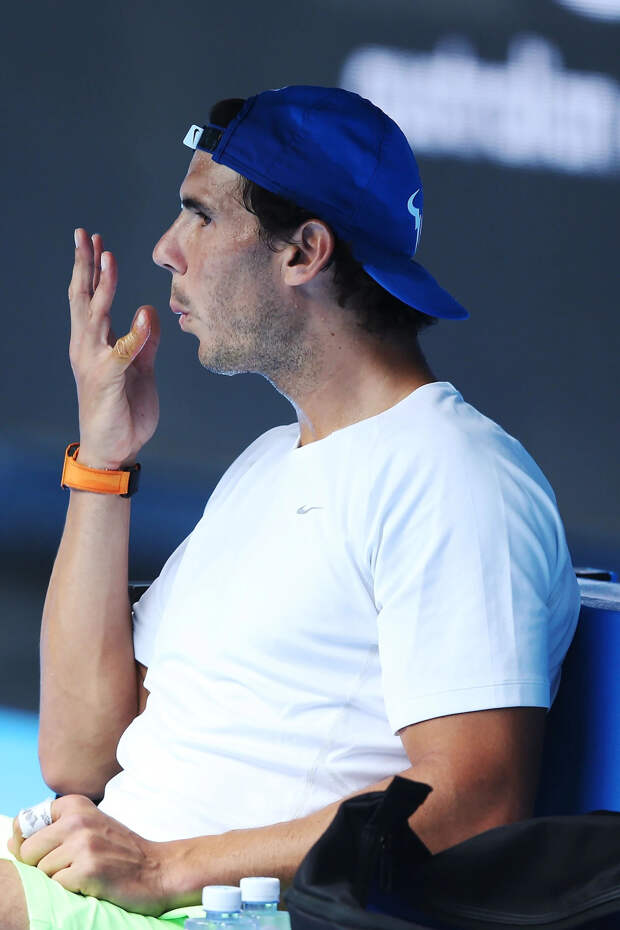У многих теннисистов на пальцах и ладонях мозоли. Иногда они настолько мешают, что из-за них берут медперерывы или даже снимаются с матчей, как Рафаэль Надаль. Так что игроки могут дуть на ладони, в то числе чтобы облегчить жжение и боль.