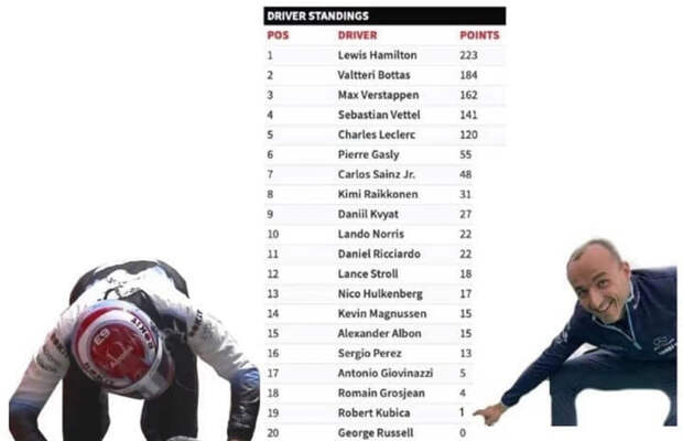 За сезон Кубица набрал всего одно очко, но это было неудивительно, так как «Уильямс» построил плохой болид. Партнер поляка Джордж Расселл ни разу не финишировал в десятке, и тогда родился знаменитый мем. При этом в квалификации британец доминировал − 21:0.