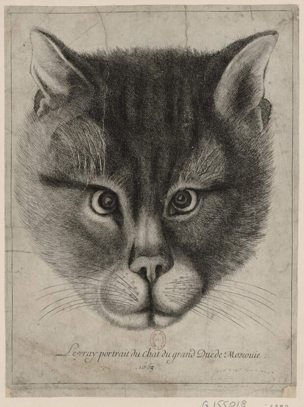 «Подлинный портрет кота великого князя Московии» 1663 года — работа чешского художника Вацлава Холлара — единственный подобный образец в истории искусств, считается, что этот портрет — самое раннее изображение домашней кошки на гравюре в России. А изображен на нем любимец самого царя Алексея Михайловича Романова. Имени пушистика история не сохранила, но зато до нас дошел его умилительный старинный портрет. Примечательно, что тогда в России подобных живописных образцов, настолько реалистичных, было довольно мало, а если и выполнялись чьи-то портреты, то это уж точно не были животные, да и сам портрет в современном его понимании распространен не был — тогда предпочтение отдавали парсуне, раннему жанру портрета, характерному для России в том числе в эпоху Алексея Михайловича.Но есть интересная «теория заговора»: существует версия о том, что царский кот совсем не тот, за кого его выдают, и на самом деле это метафорическое изображение самого царя Алексея Михайловича. К эзопову языку художник обратился из-за страха воспроизводить истинное лицо царя, поэтому на портрете — кот, в чью выразительную внешность автор работы якобы заложил характер царя.