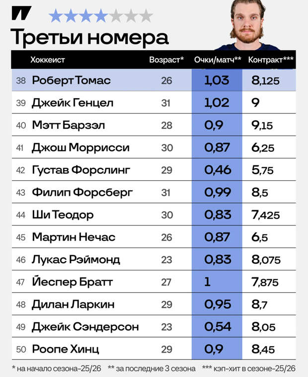 С этого момента я (при молчаливой помощи Алексея Белова) попробую осмыслять экосистему игроков НХЛ; да, в виде банального рейтинга топ-70. А что вы хотели? 2025 год – время удивлять. Время новых форматов.
