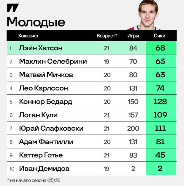 Структура, правда, требует пары комментариев. Наш топ-70 составной, в нем отдельно по десятке молодых и вратарей – и все остальное, собственно, основной рейтинг.