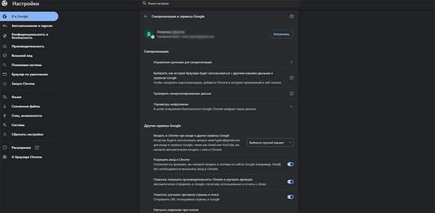 Например, в Google Chrome на ПК настройки синхронизации находятся в разделе Ваш аккаунт в Google/ «Я и Google» (нажмите вверху иконку три точки и далее на свою учётку; если не авторизованы — сначала войдите в аккаунт Google) → Синхронизация и сервисы Google → Управление данными для синхронизации. Для быстрого доступа к настройкам перейдите по ссылке: chrome://settings/syncSetup/advanced