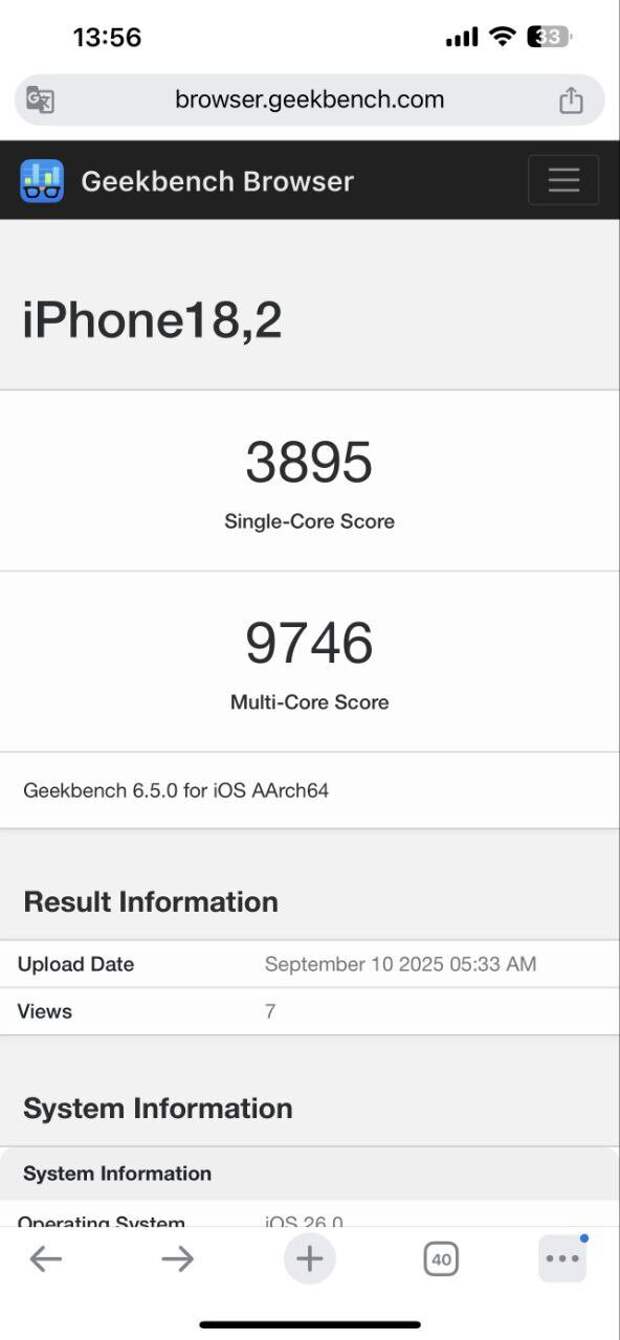 Согласно Geekbench, процессор демонстрирует внушительный прирост производительности и впрямую конкурирует с настольными решениями. Тесты, опубликованные инсайдером Jukanlosreve, показывают, что iPhone 17 Pro с A19 Pro набрал 3895 баллов в однопоточном и 9746 баллов в многопоточном режиме.