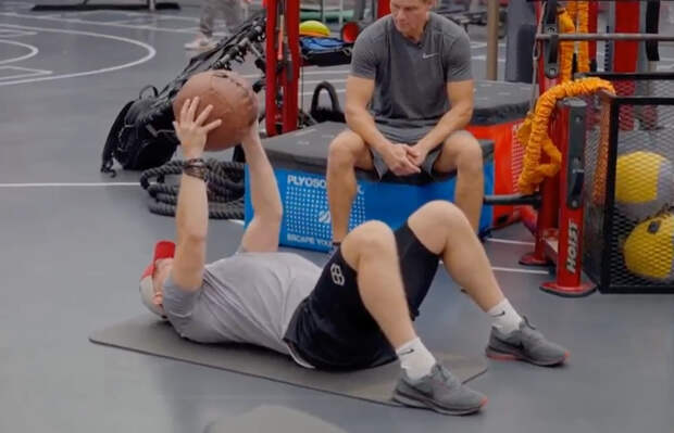 «Второе упражнение на взрывную силу, как его назвал тренер. Если честно, я бы не сказал, что в данном формате выполнения оно тренирует взрывную силу: для этого нужны мощностные быстрые движения, а Овечкин делает их довольно монотонно и медленно.