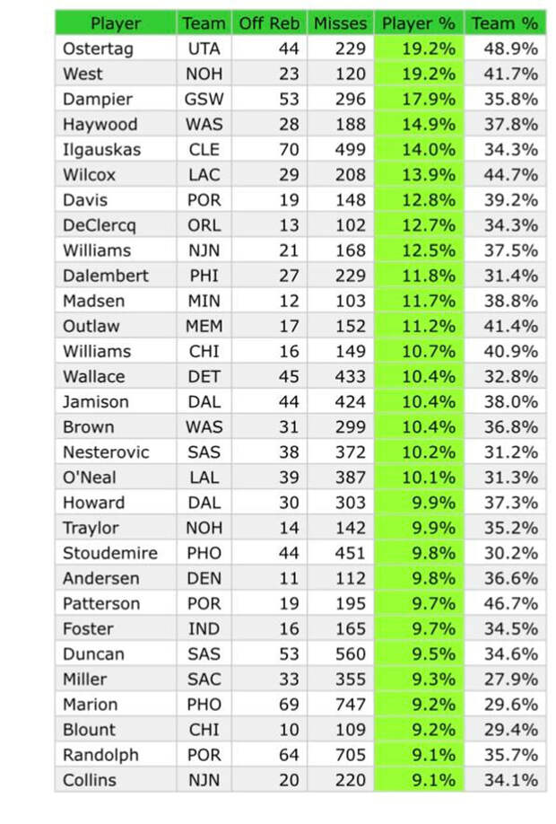 За неполный сезон Риз набрала 27 подборов со своих промахов. Вот рекордсмены каждого клуба НБА по такому показателю за все время в этой команде:
