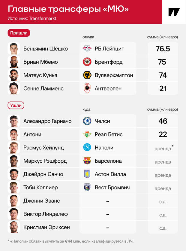 «Манчестер Юнайтед» летом потратил почти 250 млн евро: отдали столько за четверых игроков, трое из них – в атаку. Теперь-то точно забьют больше 44 голов в АПЛ?