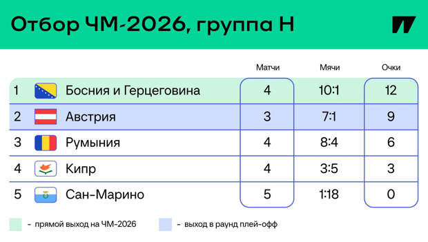 Матчи через три дня: Кипр – Румыния, Босния и Герцеговина – Австрия.