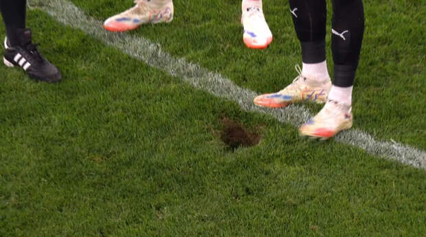 Фанаты очень обрадовались, когда на поле побежал мужчина с ведром, чтобы засыпать землю. Игроки, похоже, тоже.
