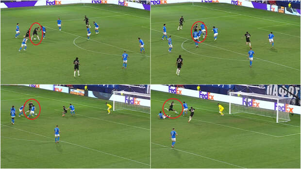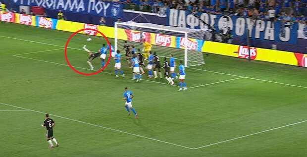 Принял мяч вообще за пределами штрафной, полез в гущу игроков «Пафоса», подхватил отскок и заодно пробил между ног вратарю. Так счет стал 4:0 в пользу «Баварии», хотя прошло чуть более получаса.