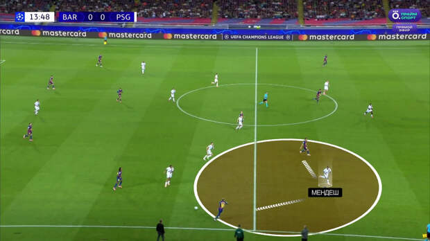 В эпизоде с пасом Ламина на Феррана Мендеш очутился в полупозиции, но это не только его вина, вся оборонительная структура «ПСЖ» выглядела хлипко: за спиной Мендеша бежал Дани Ольмо, его включение не отслеживал ни один центральный полузащитник «ПСЖ».