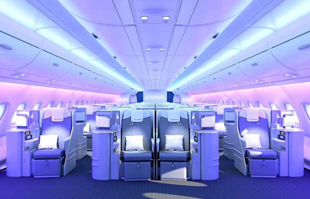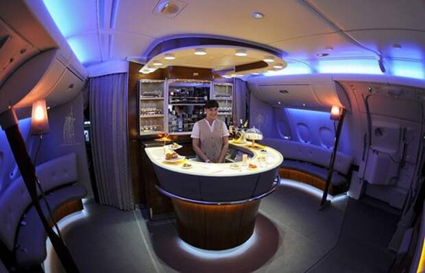 На своих первых пассажиров A380 производил впечатление не столько самолёта, сколько целого небоскрёба с крыльями. Он имел двухпалубную компоновку, а его салон вмещал более 500 пассажиров даже в комфортабельной конфигурации. На борту у самых дорогих модификаций всё было сделано для удобства пассажиров, включая бары с мягкими диванами, индивидуальные каюты в первом классе и система развлечений, которая сама по себе весила целую тонну. На второй палубе можно было пройтись, не пригибаясь, а в некоторых версиях даже стояли перегородки с лампами, напоминавшими интерьер дорогого отеля.