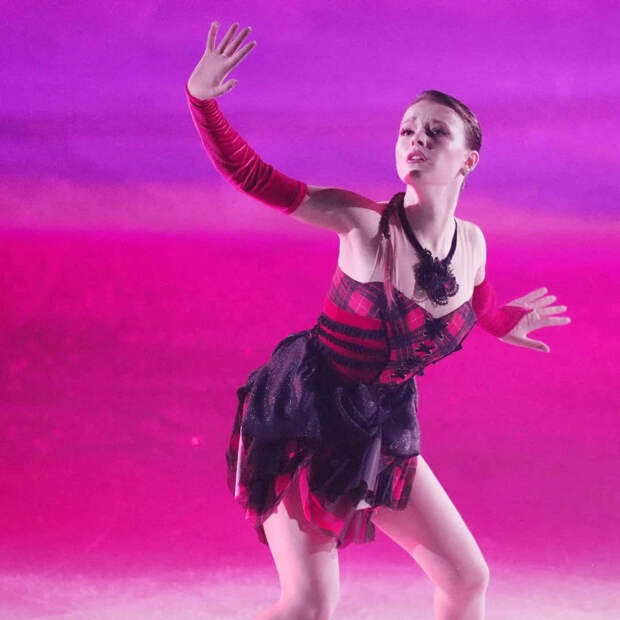 Аня тоже готовила проникновенные номера. На контрасте, в черном платье, она выступила под My Tunnels are Long and Dark These Days («Длинные и темные туннели наших дней», тоже говорящее название). А еще показала, что держит форму, и прыгнула двойной аксель в программе.