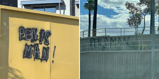 В Фениксе неизвестный вандал-граффитчик вновь вышел на тропу войны. Впервые надписи Penis Man привлекли внимание американской общественности еще в 2020 году, но затем художник куда-то пропал. А теперь, похоже, вернулся.