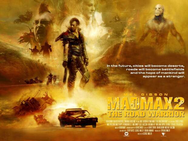 А другой, уже четко «постъядерный», фильм — это, конечно, сиквел «Безумного Макса» снятый Джорджем Миллером, бессменным автором франшизы. Если карпентеровский фильм стал показателем того, что сюжеты о крахе цивилизации обладают огромным коммерческим потенциалом ($50 миллионов сборов при бюджете в $6 миллионов), то миллеровская работа установила для них жанровый стандарт на десятилетия вперед. Именно с подачи второго «Безумного Макса» усеянная развалинами пустыня превратилась в классический сеттинг, а пестрые наряды и эклектичная эстетика новых варваров стала важной чертой дизайна в постапокалиптике. Миллер раскрыл креативный потенциал, заложенный в «Парне и его псе», но не ограничился визуальным обликом героев, а еще и представил галерею кастомных тачек, превращенных в орудия на четырех колесах.