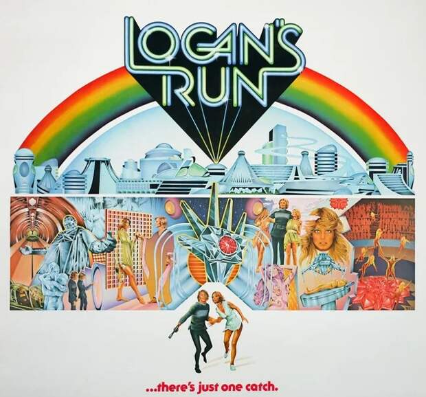 Второй фильм — это «Бегство Логана», еще один эмблематичный сай-фай своего времени. Концепт таков: далекое будущее, расслабленные люди счастливо живут в гигантских подземных городах, все системы жизнеобеспечения которых управляются ИИ, опекающим жителей от любых серьезных неприятностей, будь то болезни или голод. Но есть нюанс: как только человеку исполняется 30, он должен совершить публичный суицид во время ритуала обновления. Логан 5 — охотник, выслеживающий тех, кто хочет сбежать из города — неожиданно обнаруживает, что тема с обновлением лишь обманный маневр ИИ, призванный регулировать численность населения, иначе людям не хватит ресурсов для выживания. Выбравшись наверх, Логан узнает, что вся подземная утопия живет на обломках мира, давным-давно погибшего в ходе глобальной катастрофы.