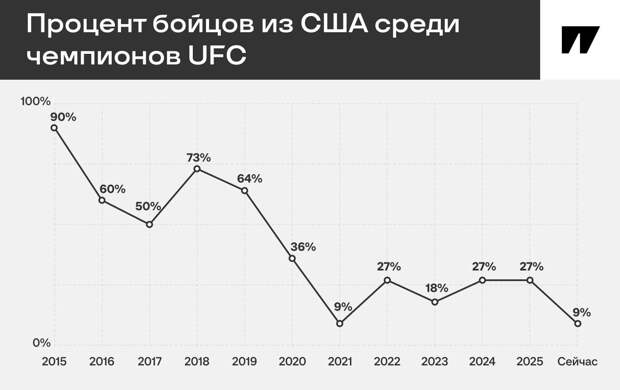Другая тенденция: с 2022 года уже три номерных турнира прошли без бойцов из США в главном карде – UFC 275 в Сингапуре, UFC 294 в Абу-Даби и UFC 305 в Перте. Кстати, Fight Night во Франции отметился тем же: в главном карде мы увидели французов, бразильцев, литовца, поляка, шотландца, ирландца, бельгийца и даже валийца, а три американских спортсмена остались в прелимах.