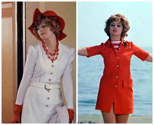 Зиночка — одна из самых модных героинь советского кино! И неудивительно: над ее гардеробом работал молодой, но уже подающий большие надежды Вячеслав Зайцев. Он тонко чувствовал западные тенденции 60–70-х и создал образ женщины, которая в фантазии Шурика должна была выглядеть яркой, смелой и стильной. Поэтому ее наряды из фильма моментально становились объектом желания советских модниц, которые перерисовывали силуэты прямо в кинотеатрах. Короткая стрижка-парик, длинные ресницы, аккуратный румянец — явный поклон европейской моде 60-х. Густая завивка и объемные локоны отсылают к трендам отечественным. Но главным хитом стал белоснежный брючный костюм, в котором Зиночка уходит от Карпа Якина и возвращается к мужу. Удлиненный жакет, широкие брюки, красная шляпа, перчатки — образ смелый, дорогой на вид и абсолютно вневременной.