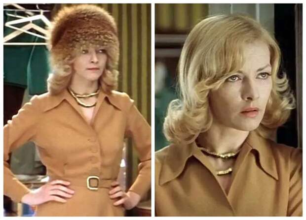 Культовый образ Барбары Брыльски в роли Нади Шевелевой давно стал одним из самых узнаваемых новогодних образов советского кино. Приталенное бежево-горчичное платье, созданное художницей Ольгой Кручининой, после выхода мелодрамы превратилось в мечту миллионов советских женщин. И это несмотря на то, что по меркам середины 1970-х оно выглядело немодным и самой Брыльске не нравилось… Но платье идеально раскрывало характер героини: скромной, сдержанной, интеллигентной учительницы, далекой от погони за трендами. Дополнили новогодний образ светлые слегка подкрученные волосы, нюдовая помада и тонкие брови. Прическу и макияж Наденьки массово копировали женщины по всей стране.