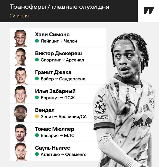 Но точно ясно одно: для покупки Симонса «Челси» нужно продать кого-то из атакующих футболистов. Главные кандидаты – Кристофер Нкунку и Жоау Феликс, не исключается и уход Николаса Джексона. «Челси» и «Лейпциг» в хороших отношениях, лондонцы покупали Тимо Вернера (и продали обратно) и Нкунку. Не исключено, что «Челси» попробует включить француза в сделку по Симонсу.