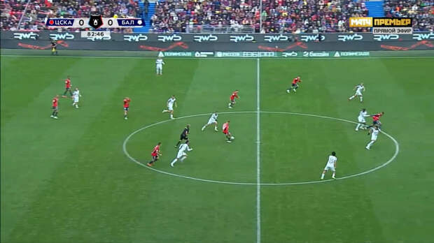 Во-вторых, ЦСКА терзал фланги. Обляков и Алвес разгоняли в ширине, Мойзес и Гайич активно подключались. ЦСКА вскрывал края стенками и отыгрышами на третьего.