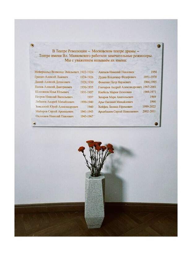 – Наоборот, руководством Театра Маяковского была проведена масштабная работа по приведению мемориальных объектов в достойное состояние. Прежний памятный знак, изготовленный из папье-маше с имитацией мрамора и размещенный в случайном, не обусловленном ни исторической логикой, ни архитектурным решением месте, был заменен на новый мемориал из натурального камня. При этом список имен павших воинов был дополнен, что восстановило историческую справедливость. Разработанный под руководством народного художника Российской Федерации, главного художника Театра Владимира Анатольевича Арефьева комплексный проект предусматривает симметричное размещение в зоне партера двух мемориальных досок: в память о воинах-маяковцах и с именами выдающихся режиссеров, творивших в Театре со дня его основания. Новое расположение в местах наибольшей проходимости обеспечивает должное внимание посетителей к этим важным историческим свидетельствам. Стоит отметить, что подобные мемориальные зоны сохранились далеко не во всех театрах.