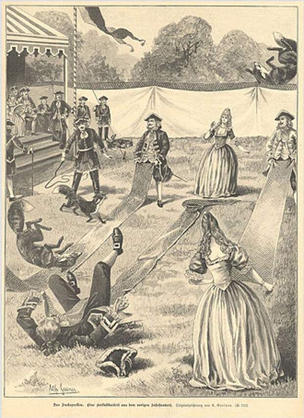 В XVII–XVIII веках среди европейской знати существовало странное и жестокое развлечение — подбрасывание лисиц. Состязание проходило во дворах или на специальных площадках, где зрители наблюдали за «турниром» в атмосфере светского веселья.
