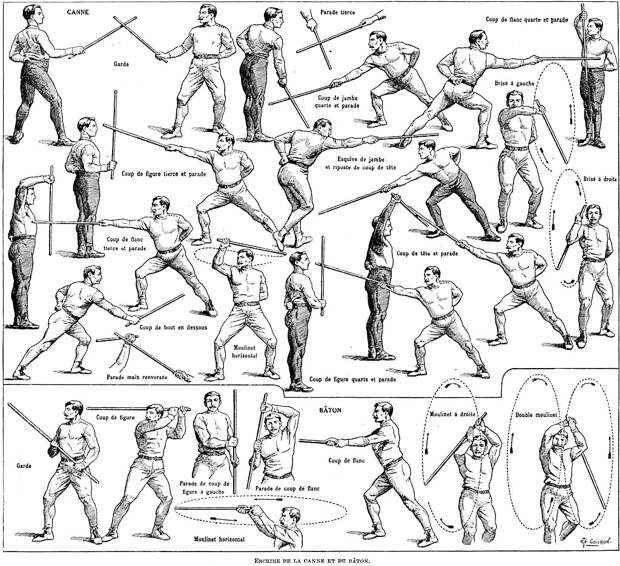 В Египте существует искусство тахтиб — стилизованное ритуальное сражение длинными шестами, где главным считается не сила, а изящество и техника. Это боевое искусство со временем трансформировалось в народный танец.