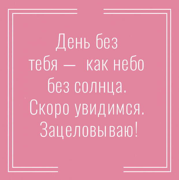 - «Не могу дождаться, когда увидимся. До встречи — хорошего дня тебе, любимка!»
