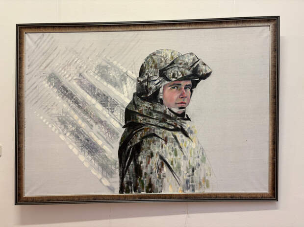 Герои с именем и без имени, но только наши современники, смотрят со стен третьего зала, где преобладает графика — возможно, скорости исполнения портретов требовала обстановка, в которой создавались портреты. Здесь имена героев портретов, не знакомые широкой публике, но эти ребята, красавцы-парни обеспечивают нашу мирную жизнь прямо сейчас. Ряд портретов героев СВО — работы Светланы Галаган. Вот командир отделения Николай, позывной «Плохой», рядом — Старченков П.П., где они сейчас? Живы ли? Что известно об их судьбе? Но есть и работа маслом, на которой увековечен Дмитрий Леонтьев, награжденный орденом Мужества посмертно.