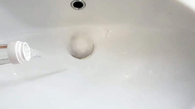 Медленно налейте в раковину уксус. Сразу начнется химическая реакция с выделением большого количества углекислого газа.