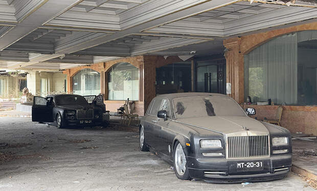 Популярный YouTube-блогер Exploring the Unbeaten Path недавно проник внутрь и показал, что скрывается за забитыми воротами. На парковке перед входом — три удлиненных Rolls-Royce Phantom, некогда подвозивших состоятельных гостей. Их окна разбиты, на кузовах следы граффити, но кузова почти целы. Ни один из автомобилей за девять лет не был разобран или ограблен, что само по себе кажется чудом.