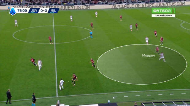 Выделяются моменты, когда «Милан» преодолевает высокий прессинг. Модрич уверенно чувствует себя под давлением и хладнокровно разбирается даже под плотной опекой.