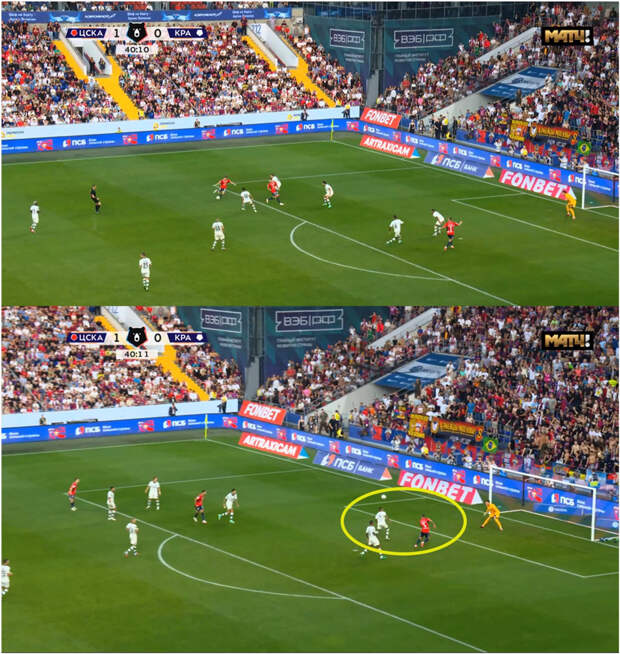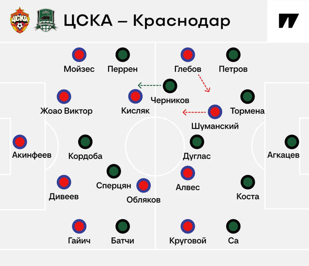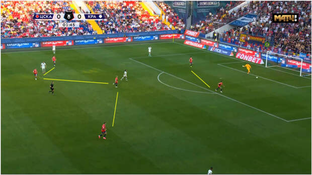 В остальных случаях ЦСКА был надежен: связывал давлением и борьбой на подборах, качественно страховал и дисциплинированно оборонялся в своей трети. В итоге с игры «Краснодар» не нанес ни одного удара из штрафной в первом тайме и сделал всего пять касаний в ней.