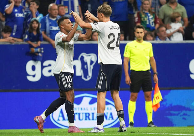 «Реал» разгромил «Овьедо» во втором туре Ла Лиги – 3:0! Дубль у Килиана Мбаппе, еще один мяч забил Винисиус. «Мадрид» сравнялся с «Барсой» в таблице, у обоих клубов шесть очков и +4 по разнице.