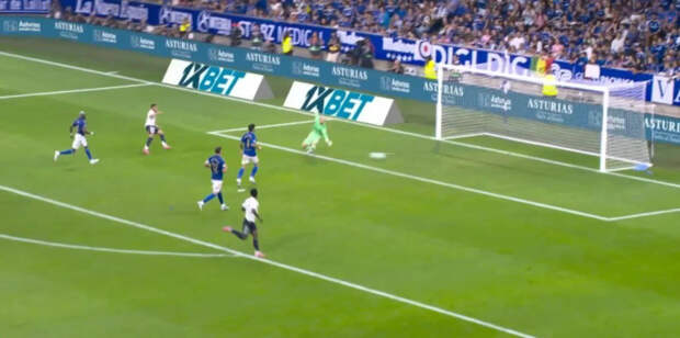 «Овьедо» на давление «Реала» в первом тайме огрызнулся лишь раз – на 23-й Саломон Рондон запустил мяч со своей половины Леандеру Дендонкеру. Бельгиец пытался перекинуть Тибо Куртуа, но вратарь легко потащил.