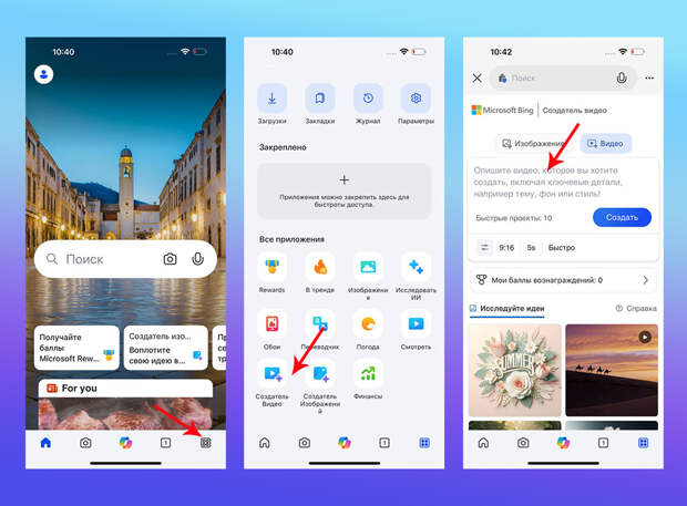 Создание ИИ-видео с помощью Bing Video Creator (Создатель видео) на смартфоне — это простой и интуитивно понятный процесс. Вот что для этого нужно сделать: