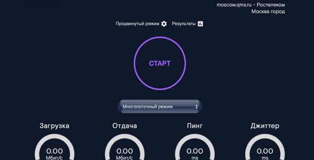 Сервис от Ростелекома. QMS не использует сторонние библиотеки вроде LibreSpeed, известные погрешностями при скорости выше 150 Мбит/с. Благодаря собственной оптимизации аппарат и алгоритм дают корректные результаты в сетях с высокой пропускной способностью