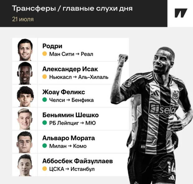 Александер Исак не против выслушать предложение «Аль-Хилаля»: оценит финансовые и спортивные аргументы саудовцев. «Аль-Хилаль» может предложить «Ньюкаслу» более 100 млн евро. Английский клуб не планирует расставаться с форвардом, но саудовцы настойчивы в желании подписать Исака.