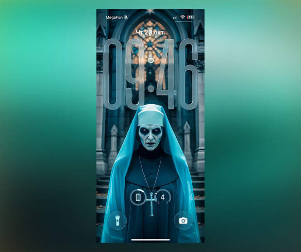 Мрачная фигура монахини Валак, её холодный ужасный взгляд, отправляет нас в атмосферу киновселенной «Заклятие». Эти обои — находка для фанатов культовых ужастиков и тех, кто хочет, чтобы экран смартфона выглядел по-настоящему нервно. Только не пугайтесь!