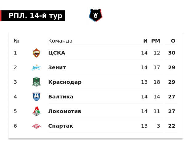 «Балтика» на четвертом месте, до «Зенита» всего два очка. До ЦСКА – три.