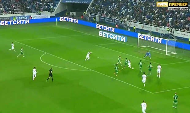 «Балтика» повела на 9-й минуте: молниеносно разыграли аут, форвард Брайан Хиль элегантно отдал в касание под движение полузащитника Максима Петрова, тот оказался в штрафной и покатил точно в нижний угол.