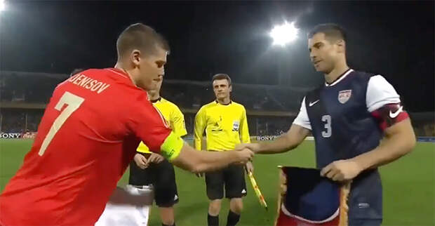 Капитаны Игорь Денисов и Карлос Баконегра тоже поприветствовали друг друга.