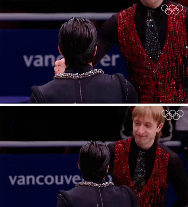 7. Евгений Плющенко отдал золото Олимпиады-2010 Эвану Лайсачеку, хотя сам себя проигравшим не считал и символично в шутку заскочил на высшую ступень пьедестала.