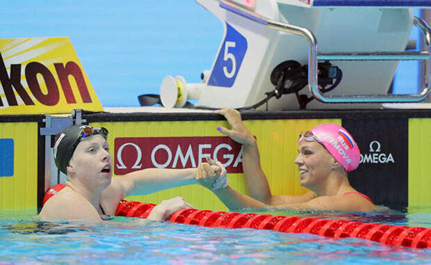 11. Культовое противостояние нашей пловчихи Юлии Ефимовой и американки Лилли Кинг. Кадр из ЧМ-2019, где Кинг выиграла 50 и 100 метров брассом, а Ефимова – 200-метровку.
