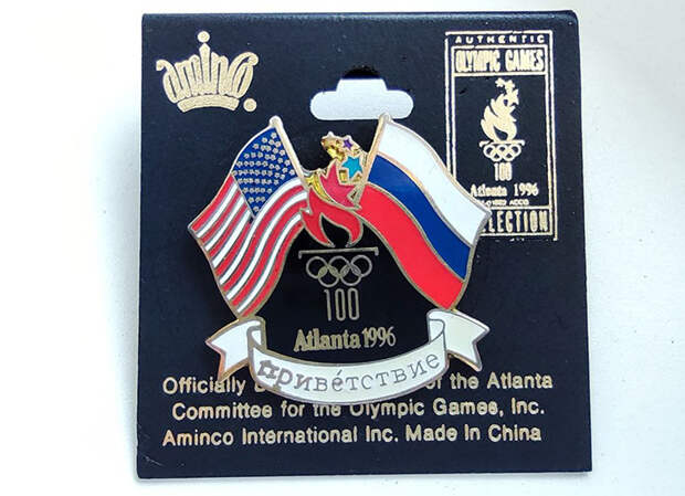 P.S. Такой раритетный значок Олимпиады-1996 мы отыскали в своих архивах. Два флага, важное слово «Приветствие» на русском языке. Прошло почти 30 лет. Запрос на нормальный диалог и дружбу по-прежнему актуален.