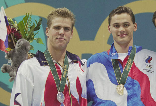 16. Александр Попов дважды победил американца Гэри Холла-младшего на Олимпиаде-1996 – в коронных 50 и 100 метров вольным стилем. Теплая встреча на пьедестале.