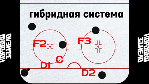 Гибридная система – агрессивная, с быстрым выходом из зоны. Если кто-то остановил игрока у борта, все сразу как коршуны спустились, накинулись, отобрали и сразу вышли.