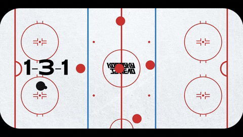 1-3-1 очень агрессивная, но есть парочка хороших закатов, которыми ее можно пройти. А 1-1-3 пройти уже сложнее. В принципе это можно сделать, но против 1-1-3 скорее придется закидывать, потому что тебя уже загоняют и отдавать пас некуда. Ты можешь отдать на красную линию, чтобы оттуда сделали заброс, но тогда, при 1-1-3, нам легче выходить из зоны – все уже по местам и знают, куда протыкать шайбу.