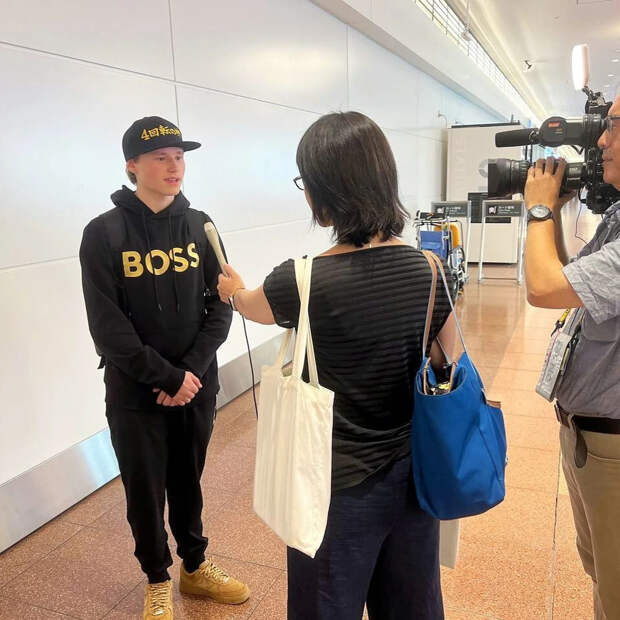 Малинин много времени проводит в Японии, поэтому даже адаптировал мерч, связанный с четверными (внимание на кепку).